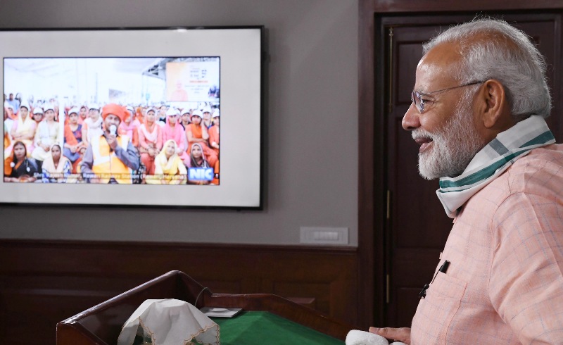 The Prime Minister, Narendra Modi interacting with a cross-section of people from across the country, via video conference, on the occasion of the “Swachhata Hi Sewa†Abhiyan, in New Delhi on September 15, 2018.