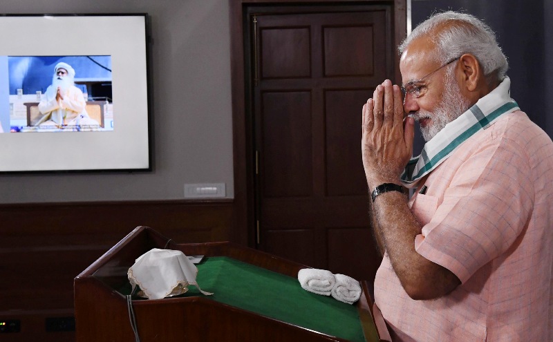 .The Prime Minister, Narendra Modi interacting with a cross-section of people from across the country, via video conference, on the occasion of the “Swachhata Hi Sewa†Abhiyan, in New Delhi on September 15, 2018.