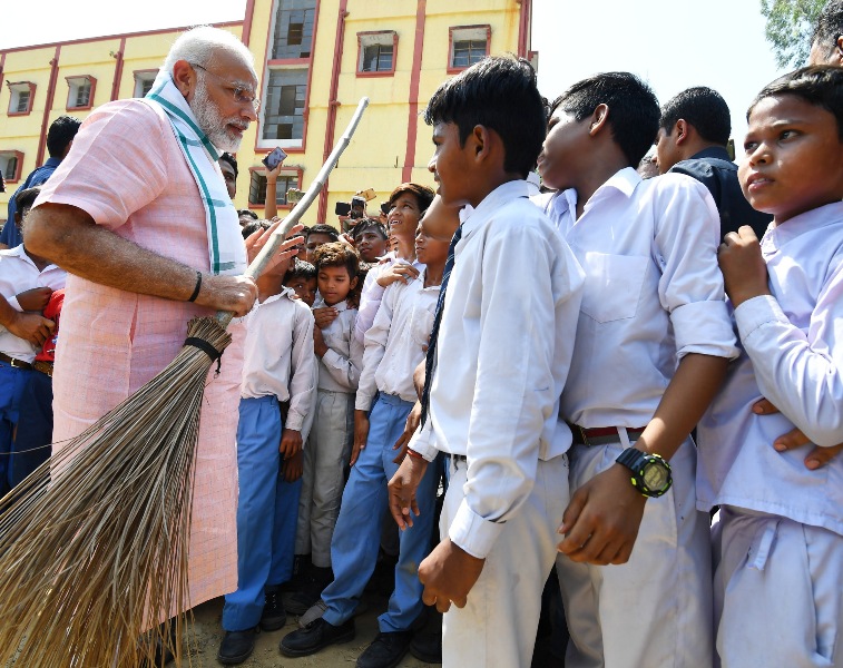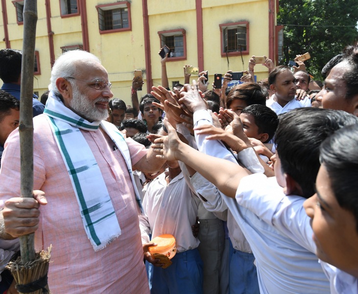 The Prime Minister, Narendra Modi interacting with the students, on the occasion of the “Swachhta Hi Seva†Abhiyan, in New Delhi on September 15, 2018.