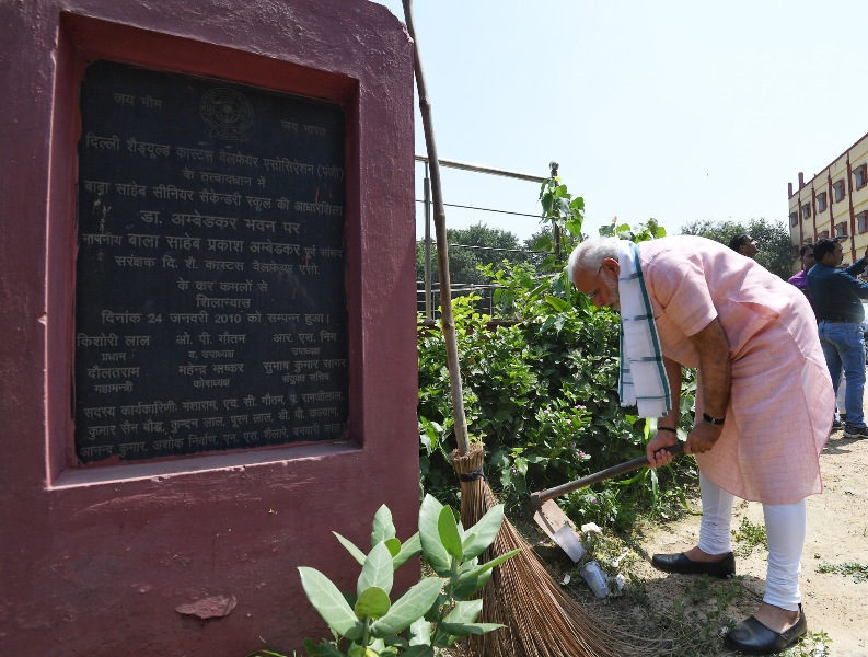 The Prime Minister,Narendra Modi offering Shramdaan, on the occasion of the “Swachhta Hi Seva†Abhiyan, in New Delhi on September 15, 2018.