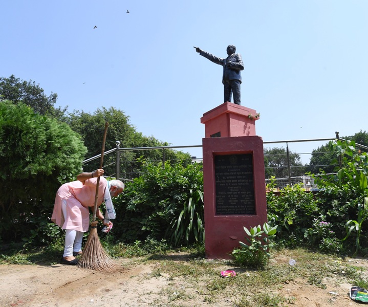 The Prime Minister, Narendra Modi offering Shramdaan, on the occasion of the “Swachhta Hi Seva†Abhiyan, in New Delhi on September 15, 2018.