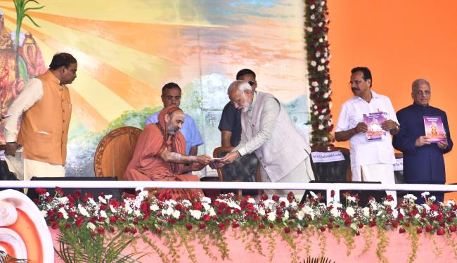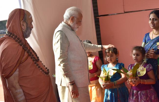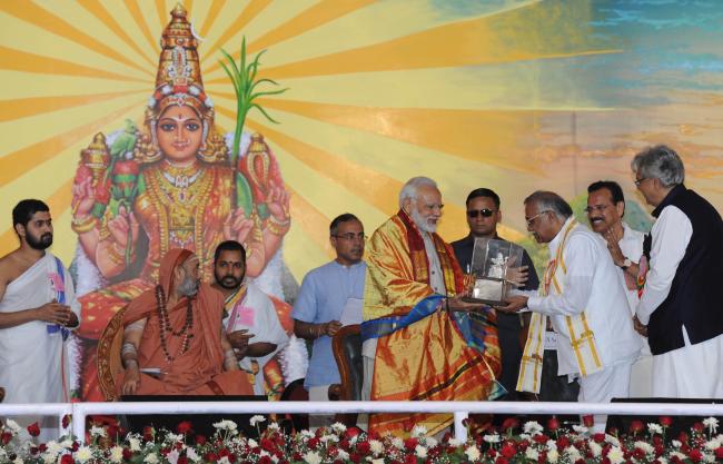 The Prime Minister, Narendra Modi at the Dashamah Soundarya Lahari Parayanotsava Mahasamarpane, in Bengaluru, Karnataka on October 29, 2017.