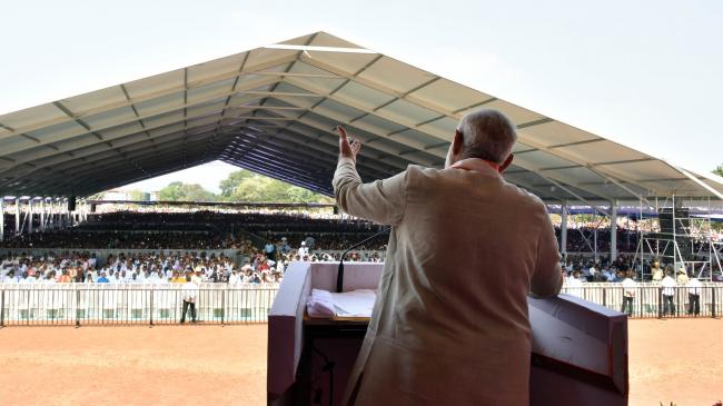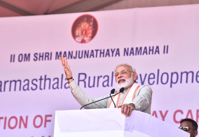 The Prime Minister, Narendra Modi addressing a public meeting, at Ujire, in Karnataka on October 29, 2017.