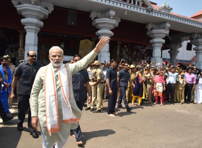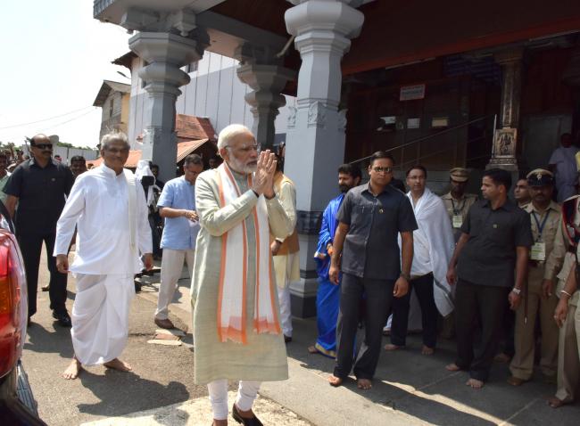 The Prime Minister, Narendra Modi offers prayers at Manjunatha Swamy Temple, at Dharmasthala, in Karnataka on October 29, 2017.
