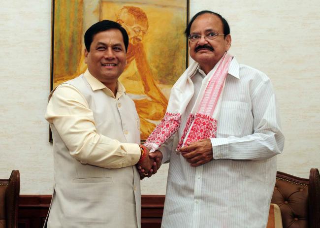 The Chief Minister of Assam, Sarbananda Sonowal calling on the Vice President, M. Venkaiah Naidu, in New Delhi on October 24, 2017.
