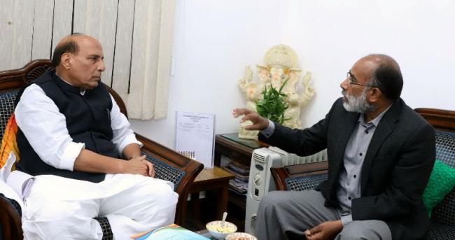 The Minister of State for Tourism (I/C) and Electronics & Information Technology, Alphons Kannanthanam calling on the Union Home Minister, Rajnath Singh, in New Delhi on December 09, 2017
