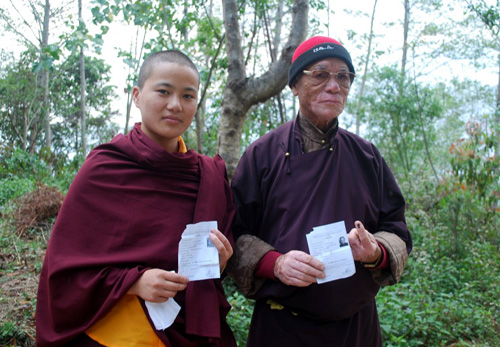A nun and a monk showing mark of indelible ink after casting their votes during the 4th Phase of Lok Sabha General Elections-2014, in Sikkim on April 12, 2014.