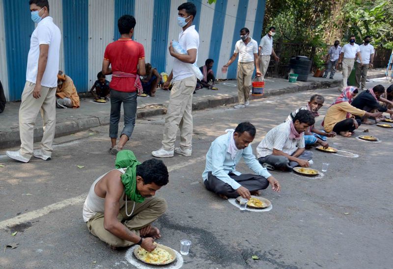 KOLKATA, APR 01 (UNI) When exigency demands, can armed forces lag far behind? CRPF jawans distributing essentials to the underprivileged following lockdown due to Coronavirus in Kolkata on Wednesday.