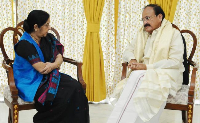The Union Minister for External Affairs,Sushma Swaraj calling on the Vice President, M.Venkaiah Naidu, in New Delhi on September 02, 2017.