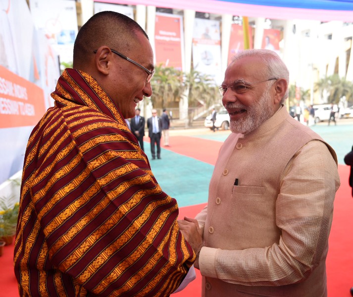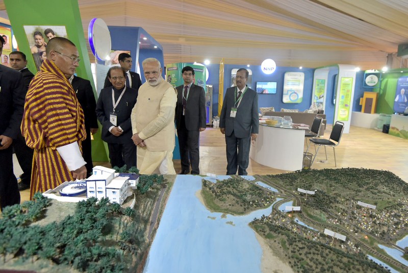 The Prime Minister, Narendra Modi and the Prime Minister of Bhutan, Tshering Tobgay at the exhibition Advantage Assam, in Guwahati, Assam on February 03, 2018.