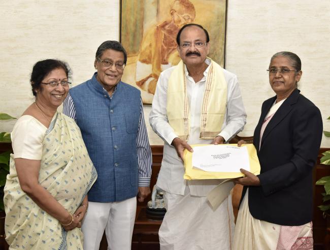 The Supreme Court Judge, Justice R. Bhanumathi, the Chief Justice of Bombay High Court, Justice Manjula Chellur and the Autorney General of India, K.K.Venugopal calling on the Vice President,M.Venkaiah Naidu, in New Delhi on September 05, 2017.