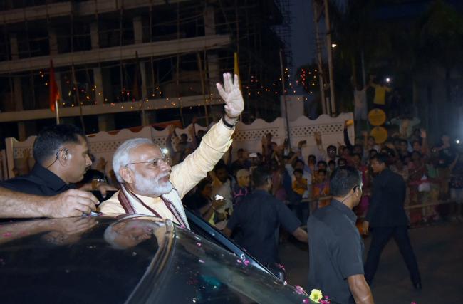 The Prime Minister, Narendra Modi being warmly welcomed by the people, during his visit to Vadodara, Gujarat on October 22, 2017