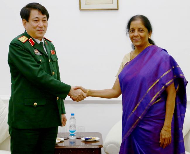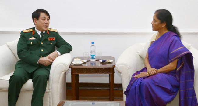 The Chief of General Political Department, Vietnam People’s Army, Lt. General Luong Cuong calling on the Union Minister for Defence, Nirmala Sitharaman, in New Delhi on November 13, 2017.