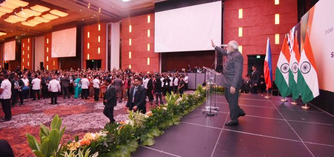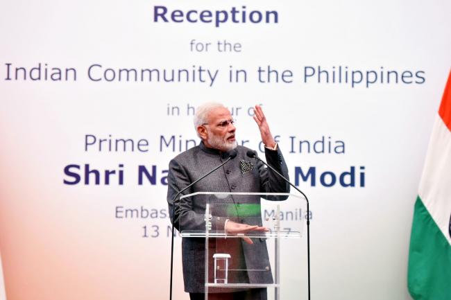The Prime Minister, Narendra Modi addressing the gathering at the Reception for the ‘Indian Community in Philippines’ hosted by Indian Ambassador in honour of Prime Minister, in Manila, Philippines on November 13, 2017.