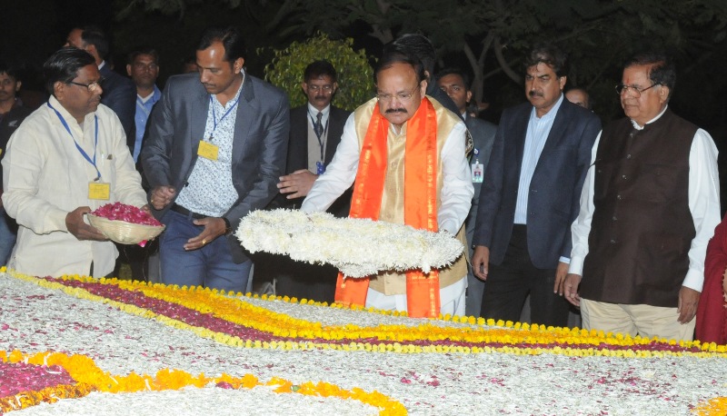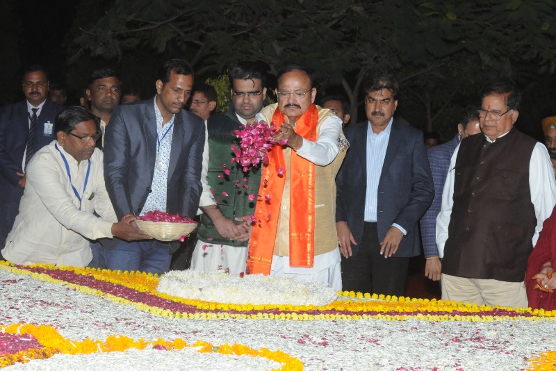 The Vice President, M. Venkaiah Naidu offering floral tributes to the former Vice President of India, late Bhairon Singh Shekhawat, at his memorial, in Jaipur on January 06, 2018.