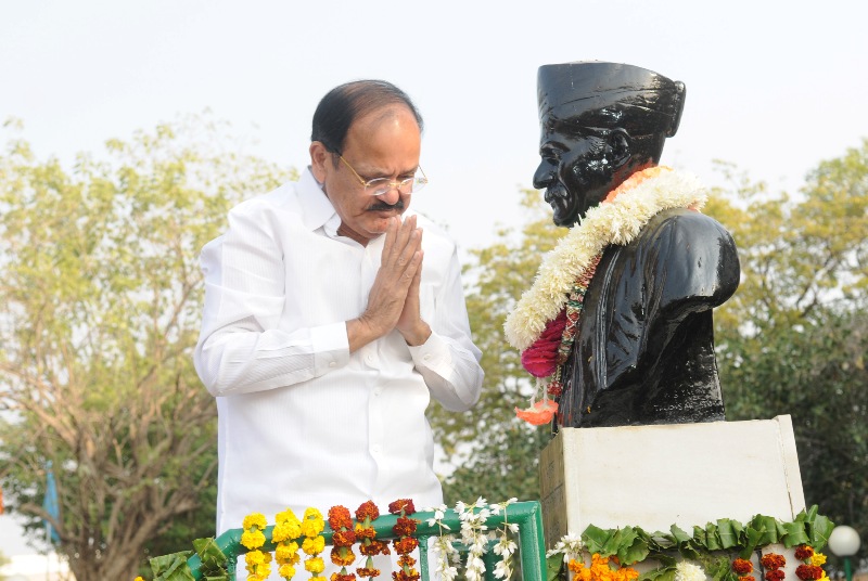 The Vice President, M. Venkaiah Naidu offering tributes at the statue of Mahamana Pandit Madan Mohan Malaviya, during his visit to the Malaviya National Institute of Technology, in Jaipur on January 06, 2018.