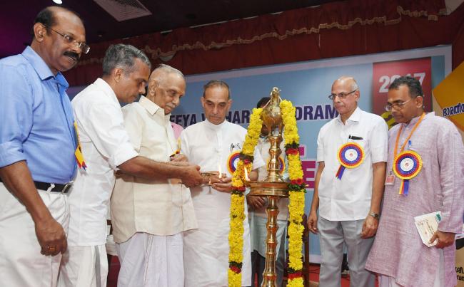 The Minister of State for Human Resource Development and Water Resources, River Development and Ganga Rejuvenation, Dr. Satya Pal Singh lighting the lamp to inaugurate the National Academic Meet, organised by Bharatheeya Vichara Kendra, in Thiruvananthapuram on October 23, 2017. The Director Bharatheeya Vichara Kendra, P. Parameswaran and other dignitaries are also seen.