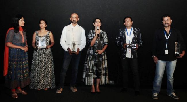 The Director Prasad Oak, Producer Mandar Devasthali with the cast and crew of the film KACHCHA LIMBU, at the Presentation, during the 48th International Film Festival of India (IFFI-2017), in Panaji, Goa on November 24, 2017.