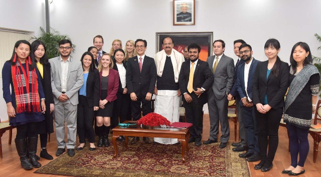 The Vice President, M. Venkaiah Naidu with the members of faculty and students from Harvard, Stanford and MIT of the USA, in New Delhi on December 27, 2017.