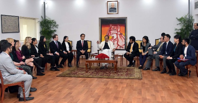 The Vice President, M. Venkaiah Naidu interacting with the members of faculty and students from Harvard, Stanford and MIT of the USA, in New Delhi on December 27, 2017.