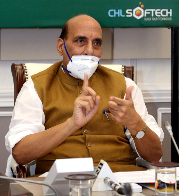 NEW DELHI, AUG 27 (UNI):- Defence Minister Rajnath Singh in a group photograph at the launch of the DGNCC Mobile Training App for the benefit of National Cadet Corps cadets to help train themselves during COVID-19 times, in New Delhi on Thursday. Defence Secretary, Dr Ajay Kumar and DG, NCC, Lieutenant, General Rajeev Chopra and also seen.
