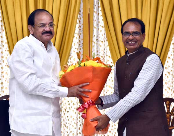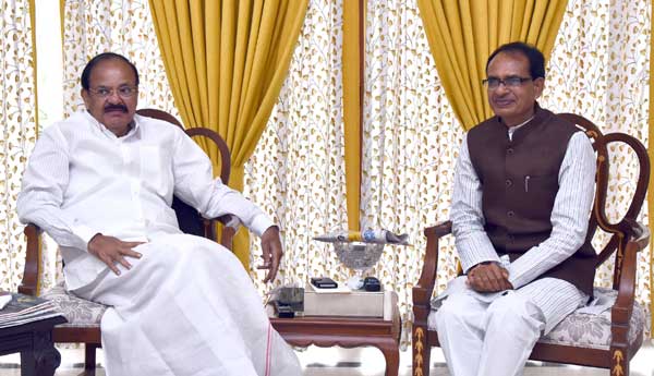 The Chief Minister of Madhya Pradesh, Shivraj Singh Chouhan calling on the Vice President, M. Venkaiah Naidu, in New Delhi on November 16, 2017.