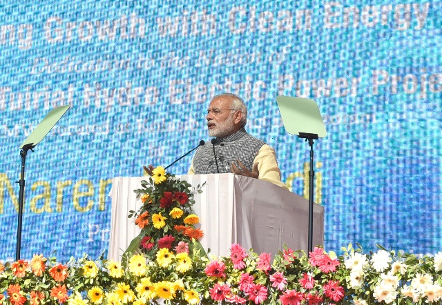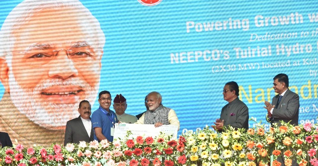 The Prime Minister, Narendra Modi at the ceremony to dedicate the Tuirial Hydro Electric Power Project to the Nation, at Assam Rifles Cant, Aizawl on December 16, 2017.