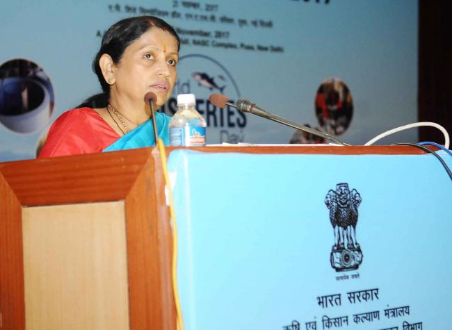 The Minister of State for Agriculture and Farmers Welfare, Krishna Raj addressing at the inauguration of the World Fisheries Day Celebrations 2017, in New Delhi on November 21, 2017.