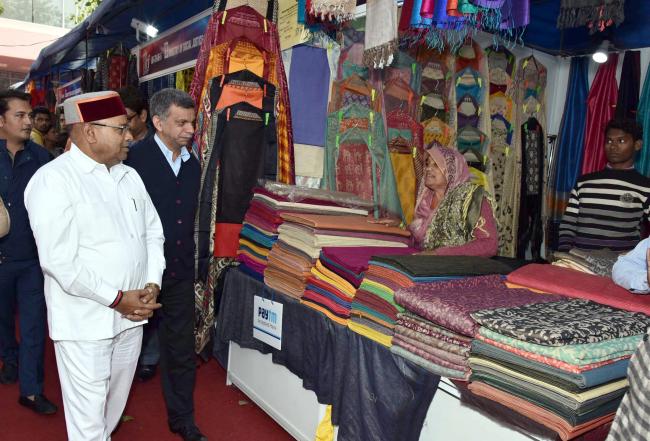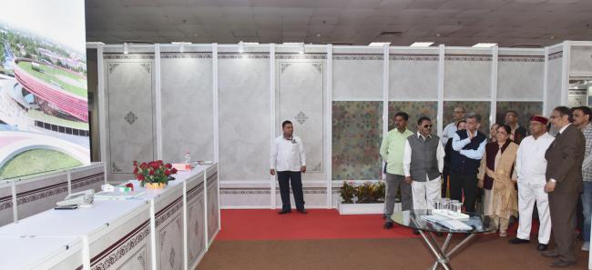 The Union Minister for Social Justice and Empowerment, Thaawar Chand Gehlot visiting the stalls of the Ministry of Social Justice and Empowerment, at the India International Trade Fair (IITF), at Pragati Maidan, in New Delhi on November 21, 2017.