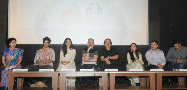 The Cast & Crew of the film BEYOND THE CLOUDS, at the Press conference, during the 48th International Film Festival of India (IFFI-2017), in Panaji, Goa on November 21, 2017.