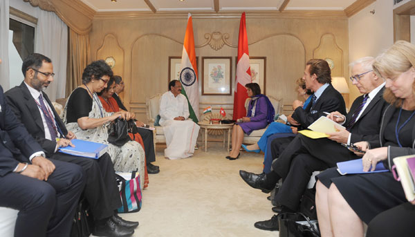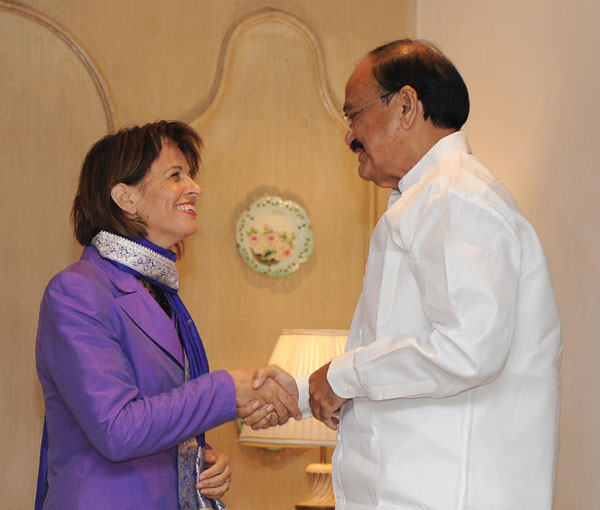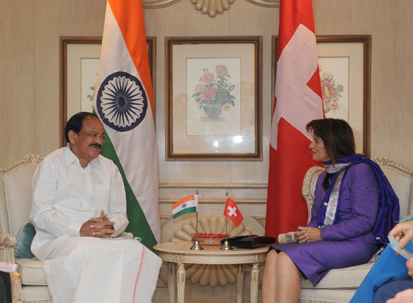 The Vice President,M.Venkaiah Naidu calling on the President of Swiss Confederation,DorisLeuthard, in New Delhi on August 31, 2017.