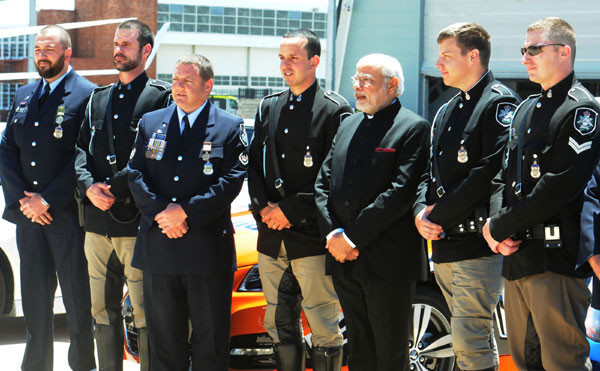 Narendra Modi being warmly received by the Prime Minister of Australia