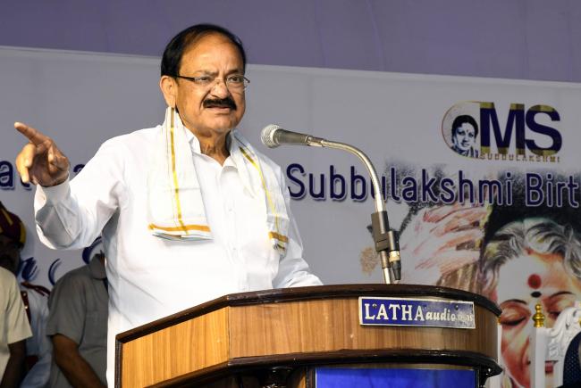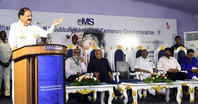 The Vice President, M. Venkaiah Naidu addressing the gathering at the Birth Centenary Commemoration of Dr. M.S. Subbalakshmi, in Chennai on October 17, 2017.