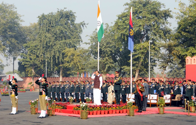 The Vice President, M. Venkaiah Naidu taking the salute during the inauguration of the NCC Republic Day Camp 2018, in New Delhi on January 06, 2018.