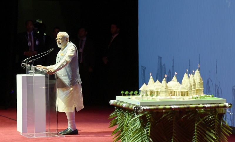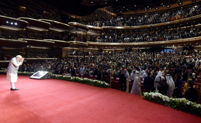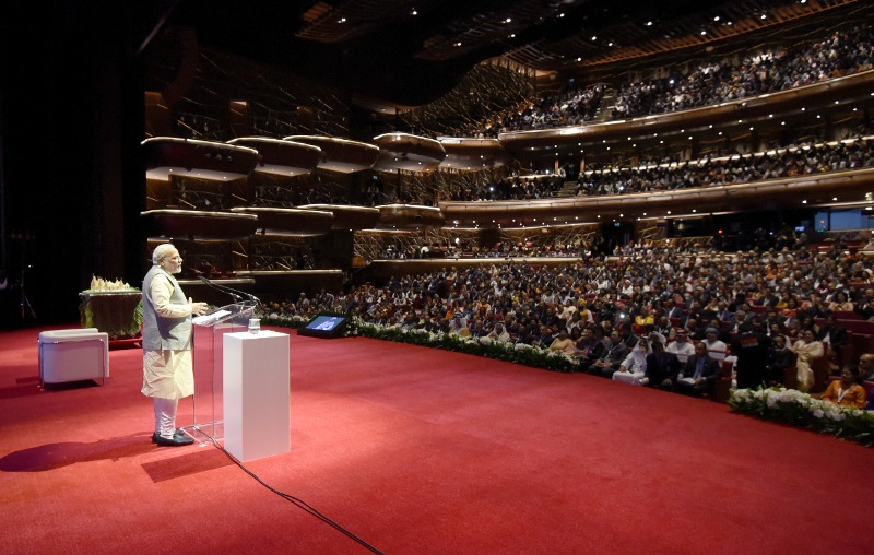 The Prime Minister, Narendra Modi addressing the Indian community at the iconic Dubai Opera, in Abu Dhabi, United Arab Emirates on February 11, 2018.
