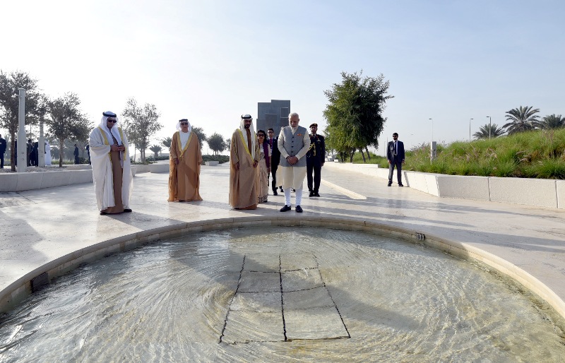 The Prime Minister, Narendra Modi paid tributes to brave soldiers of UAE who made ultimate sacrifice in the service of UAE at Wahat Al Karama “Oasis of Dignityâ€, in Abu Dhabi, United Arab Emirates on February 11, 2018.