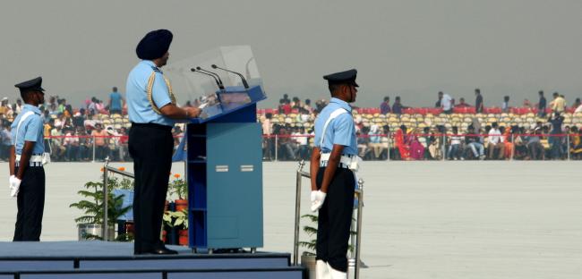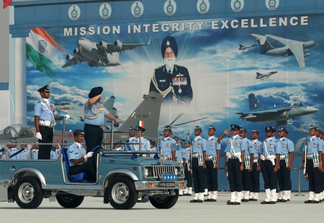 The Chief of the Air Staff, Air Chief Marshal B.S. Dhanoa on dais during Air Force Day Parade, at Air Force Station Hindan, in Ghaziabad on October 08, 2017.