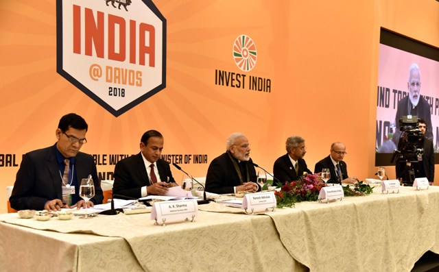 The Prime Minister, Narendra Modi at the Roundtable meeting with CEOs, in Davos on January 22, 2018.