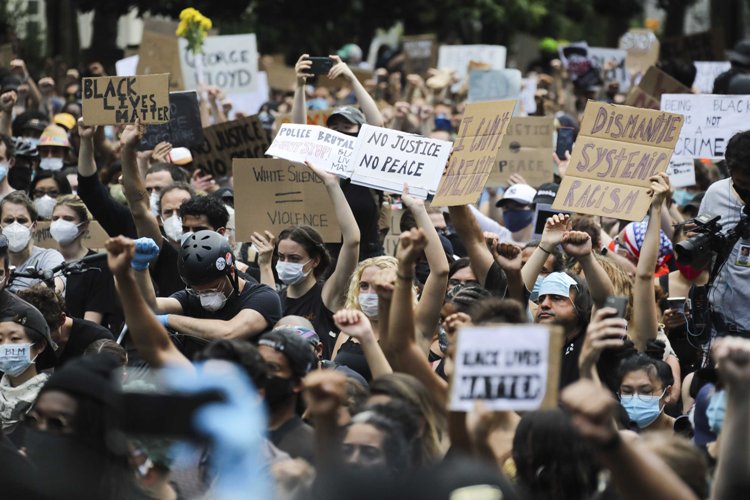 People attend memorial service of George Floyd