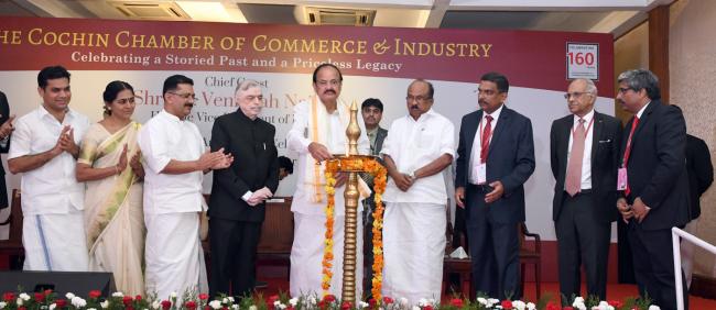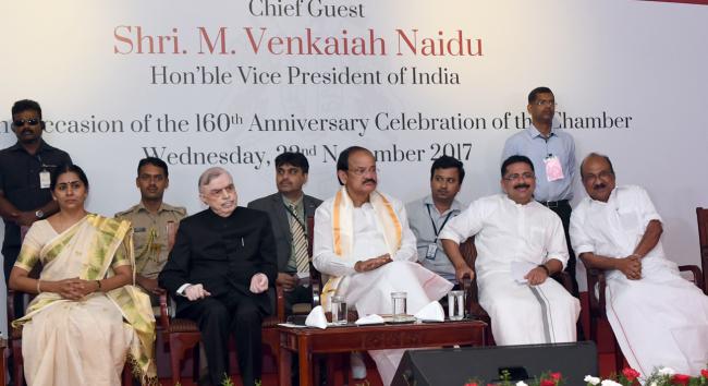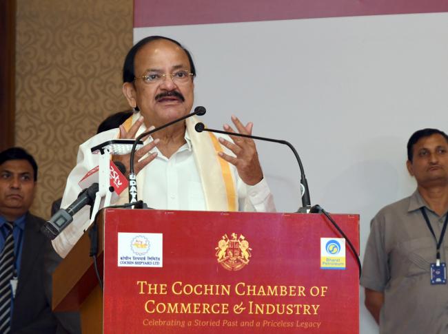 The Vice President, M. Venkaiah Naidu addressing the gathering an event to celebrate 160 Years of Cochin Chamber of Commerce and Industry, in Kochi, Kerala on November 22, 2017.