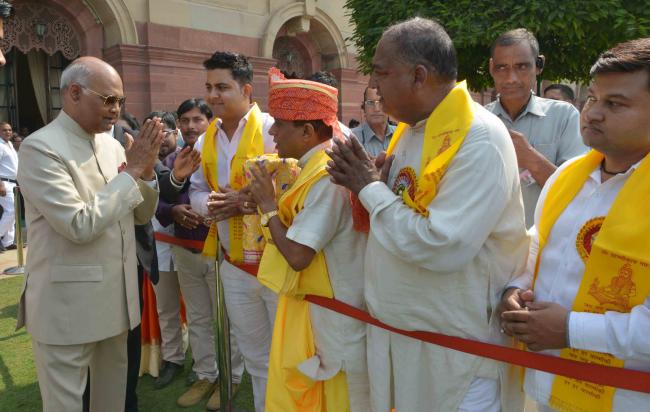 The President, Ram Nath Kovind receiving greeting from all walks of life, on the occasion of Deepawali, at Rashtrapati Bhavan, in New Delhi on October 19, 2017.