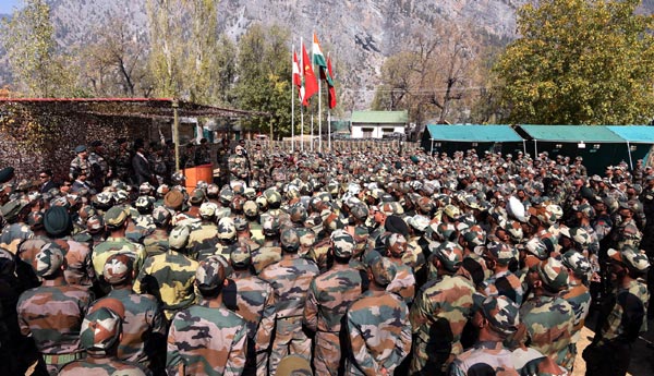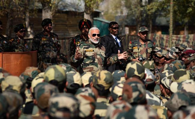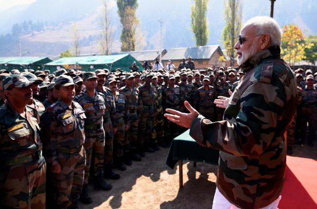The Prime Minister, Narendra Modi celebrating the Diwali with the jawans of the Indian Army and BSF, in the Gurez Valley, near the Line of Control, in Jammu and Kashmir, on October 19, 2017.