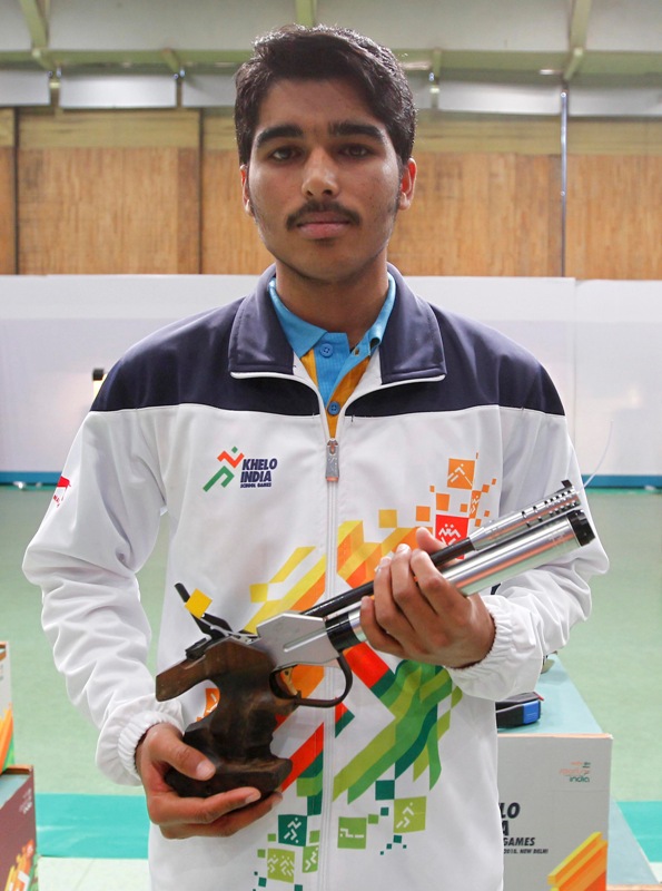 The Gold Medal Winner Saurabh Choudhary (Allahabad) in the 10M Air Pistol event for boys, in New Delhi on February 04, 2018.