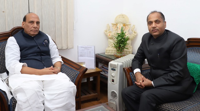 The Chief Minister of Himachal Pradesh, Jai Ram Thakur calling on the Union Home Minister, Rajnath Singh, in New Delhi on December 29, 2017.
