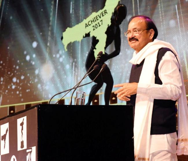 The Vice President, M. Venkaiah Naidu addressing the gathering after presenting Pratidin Achievers Awards 2017, instituted by Sadin Pratidin Group, in Guwahati, Assam on December 03, 2017