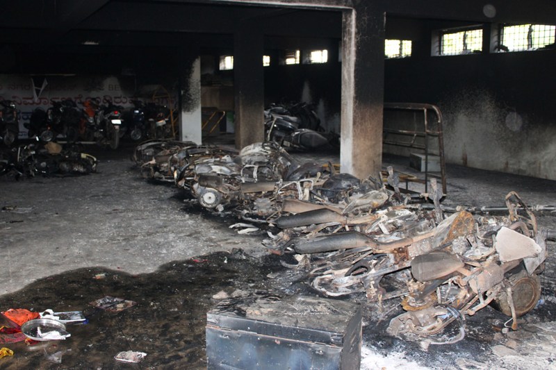BENGALURU, AUG 12 (UNI) :-Miscreants burnt several vehicles during a violence at DJ Halli police station on Tuesday night, in Bengaluru on Wednesday