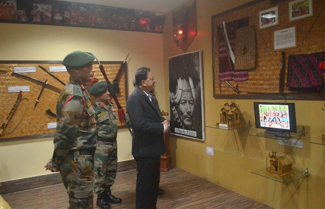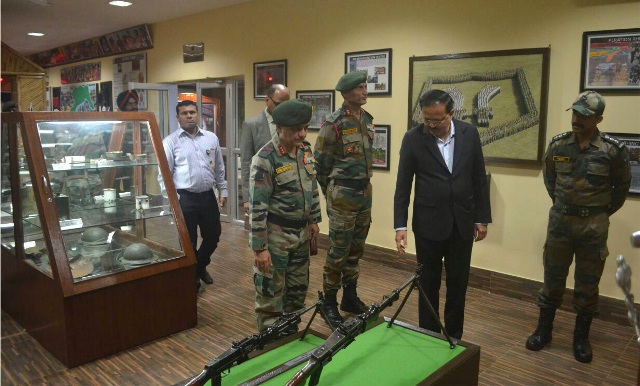 The Minister of State for Defence, Dr. Subhash Ramrao Bhamre visiting the artifact in Heritage Hall of Dao Division, at Dinjan Military Station, in Assam on December 13, 2017.