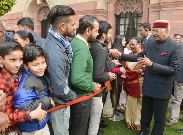 The President, Ram Nath Kovind receiving greetings from all walks of life, on the occasion of New Year, at Rashtrapati Bhavan, in New Delhi on January 01, 2018.