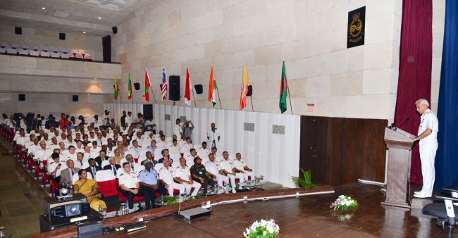 The Chief of Naval Staff, Admiral Sunil Lanba addressing at the inauguration of the Goa Maritime Conclave, at Naval War College, in Goa on November 01, 2017.