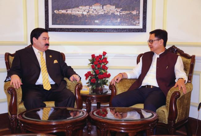 The Ambassador of the Republic of Kazakhstan to India, Mr. Bulat Sarsenbayev calling on the Minister of State for Home Affairs, Kiren Rijiju, in New Delhi on November 01, 2017.